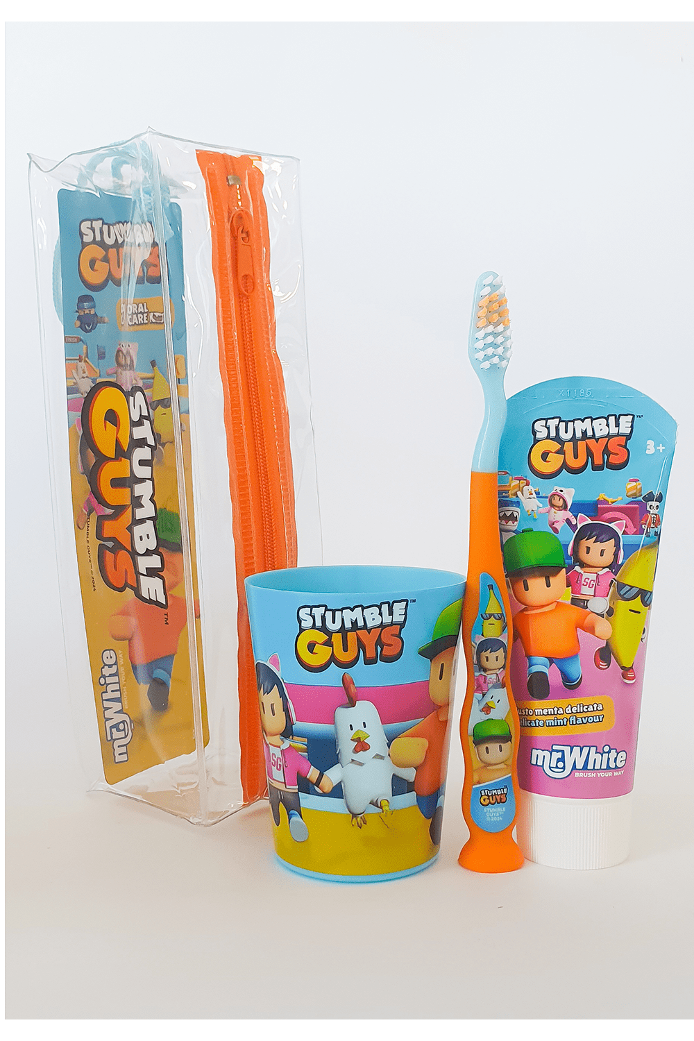 Una pratica pochette completa di: spazzolino da denti con ventosa alla base, cappuccio coprisetole, dentifricio per bambini gusto menta delicata, formato 75 ml e bicchiere. La testina dello spazzolino è appositamente studiata per raggiungere tutte le superfici dentali della bocca del bambino, ha setole morbide e arrotondate per essere il più delicate possibile sullo smalto dentale e sulle gengive. Il manico ha forma e dimensione tale per cui il bambino lo può comodamente manipolare e l’adulto può impugnarlo per insegnare al proprio figlio il modo corretto di spazzolarsi i denti. È raccomandabile cambiare lo spazzolino ogni 3 mesi o quando le setole appaiono visibilmente deteriorate. Non adatto ai bambini sotto i 36 mesi per la presenza di piccole parti che possono essere ingerite.